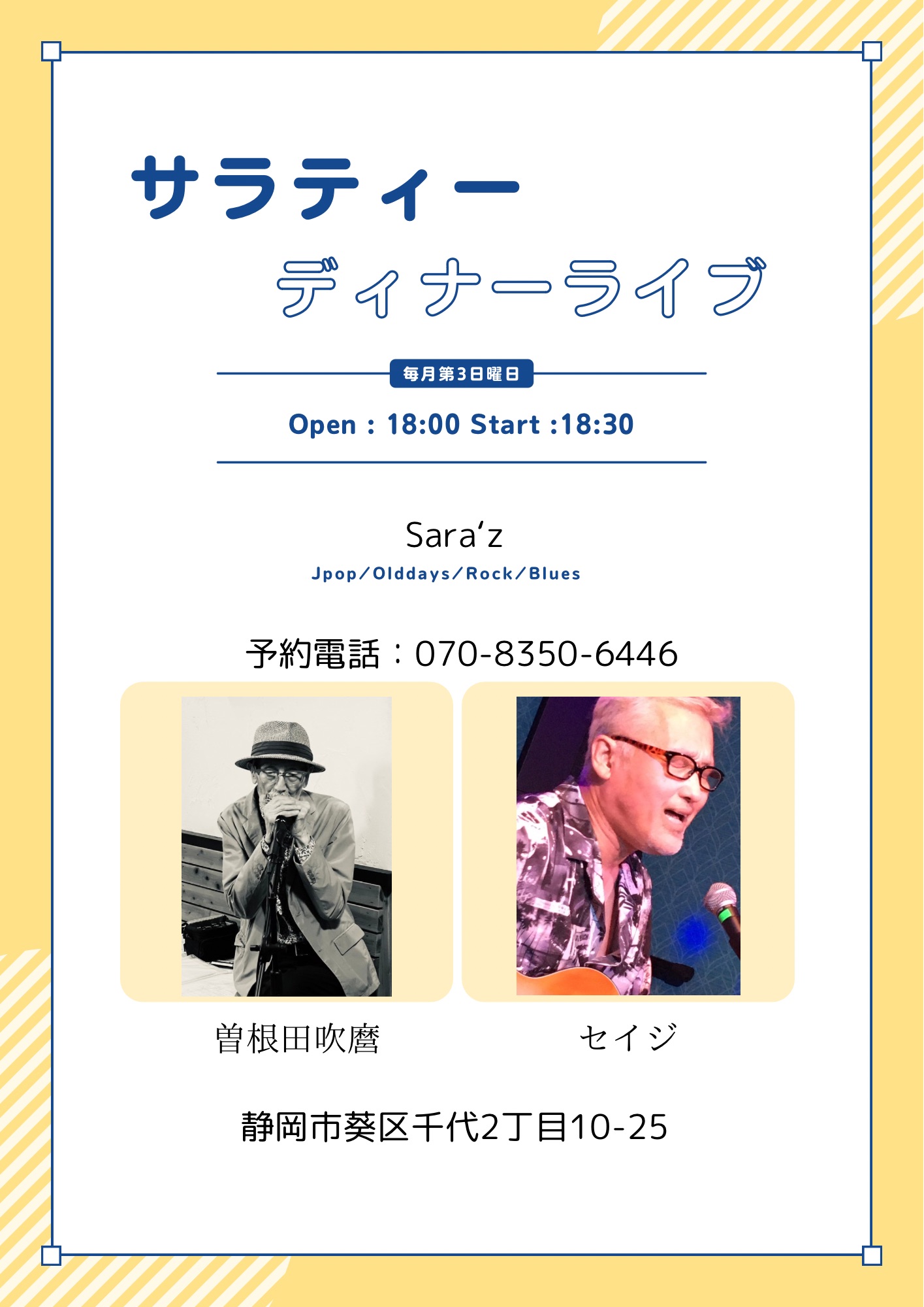毎月第3日曜日サラティーにてディナーライブ